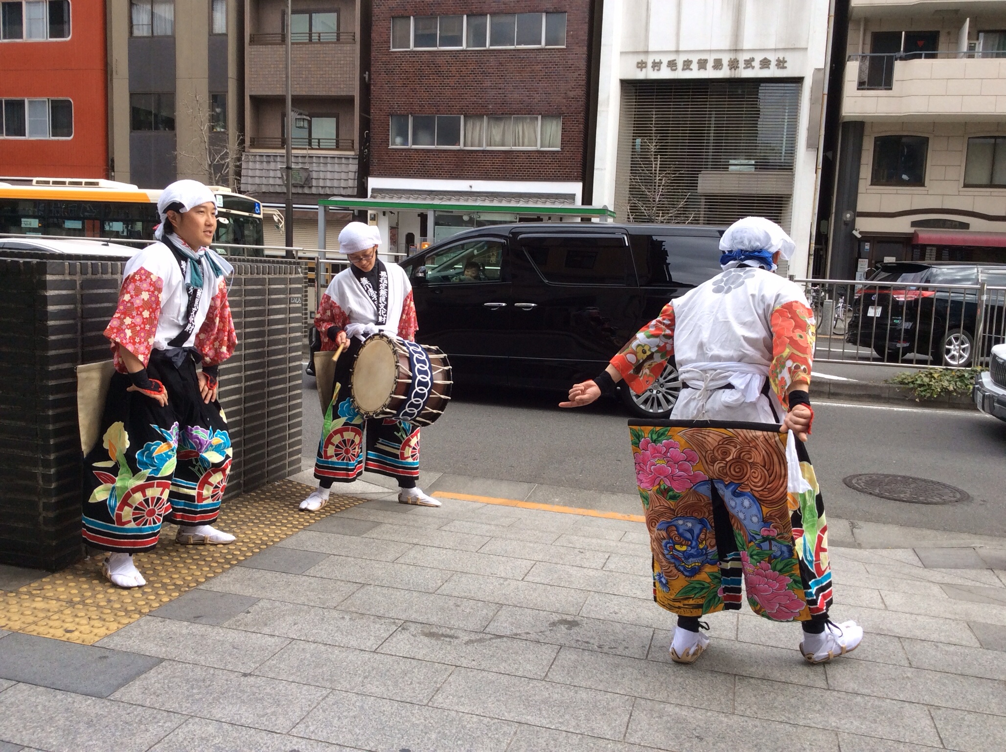 チンドン屋じゃなくてこんな人達でした。なんですかねぇ。お神楽でもないし、門付けでもないし、…。パフォーマーの方々ですね。