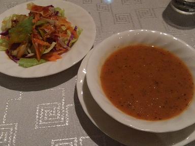 私はビーフケバブランチとランチビールを注文しました。注文した途端、豆のスープとサラダが登場。